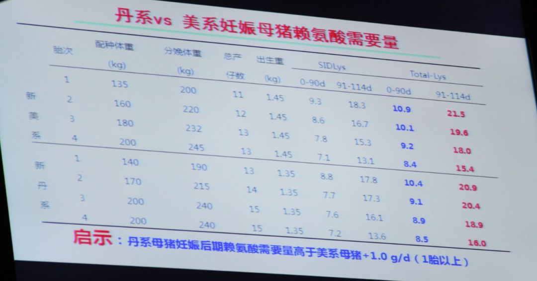 吴德教授分别从国内母猪的生产水平与养猪发达国家的差距、当前养猪生产存在的关键问题和改善母猪生产的新技术及新思路三个方面进行了分享。 一、国内母猪生产水平与养猪发达国家的差距越来越小,2016年调查中,中国与美国、丹麦的差距缩小,这得益于新技术的应用、精细化的管理。 二、国内种母猪生产存在的主要问题 1、母猪发情率低:母猪不发情或推迟发情。 2、有效活仔数低:死胎、木乃伊和宫内生长限制仔猪增加。 3、新生和断奶仔猪的成活率低:生的下,养不活。 4、母猪淘汰率高:丹麦、北美、国内的母猪年淘汰率均高达50%。50%母猪仅提供30-40头断奶仔猪极被淘汰;母猪高淘汰率是世界性难题。 三、种母猪精细化管理。精细化管理通过规范化管理、个性化管理和细节上的精细化管理来实现。 1、精细化管理 (1)精:营养精准 协同营养 微生物营养 精准营养:最佳环境条件下,确保维持需要最低,用于生产效率最高。 对于种母猪而言,包括阶段精准营养(单个繁殖周期不同生理阶段、不同胎次间的营养)和系统精准营养(保证母猪终生繁殖力最佳的营养)。 实验发现,母猪遗传潜力与终生繁殖力不匹配,初生母猪原始卵泡库中有60-100万个卵母细胞,而排卵受精生出小猪的只有30-60个,99%的卵母细胞被浪费,这说明母猪具有巨大的繁殖潜能。如果再增加1-2%的卵母细胞,终生将多增加100头产子数。丹麦提出130头的终生断奶仔猪头数,美国由原来的60头到现在的80-100头。 后备母猪不同生理阶段营养需求 20kg-75kg:原始卵泡大量激活,生长卵泡募集,防止营养不当导致原始卵泡不激活、过度激活或凋亡。 75kg-初情:大卵泡形成,卵母细胞成熟,初情启动,降低雌激素负反馈,增强FSH/LH信号。 初情-配种:卵巢周期性排卵,卵母细胞周期性成熟,短期优饲,特殊营养因子。 母猪进入繁殖周期后不同生理阶段的营养需求 空怀-配种:短期优饲增强繁殖代谢信号。 配种-妊娠:适宜营养水平维持孕酮;维持适宜体况,防止过肥(瘦)。 妊娠-泌乳:适度限饲保证乳腺发育;改善肠道健康降低体内毒素。 泌乳-空怀:提高采食量维持泌乳需要;确保卵泡发育因子。 营养调控后备母猪卵泡激活和发育思路 消化产物为葡萄糖、脂肪酸的日粮可通过leptin/IGF1激活mTORC1信号通路导致原始卵泡过度激活。 饲喂适应纤维比例饲粮,其消化产物包括葡萄糖以及SCFAs和血清素可通过AMPK信号通路防止原始卵泡的过度激活。 不同阶段营养方案的有机结合 生产中片面追求阶段营养的几个误区 追求后备母猪最大生长速度以促进初情发动,导致卵泡发育与体成熟发育不匹配。 妊娠母猪片面使用高纤维防止便秘,但忽视纤维类型。 追求泌乳最大化,母猪断奶后发情率和受胎率降低。 保证骨骼健康的钙磷、维生素营养 母猪淘汰中有30-40%因为骨骼原因。骨代谢不仅影响肢蹄健康,不仅调控外周代谢,而且直接影响下丘脑-垂体-性腺功能。 协同营养 饲粮的营养素、营养源及营养活性物质精确有效配合,共同增效,满足动物最优生产性能和机体健康。 协同营养的四级结构 一级结构:营养素及其相互关系,如:能量、蛋白质、氨基酸、矿物质等及其相互精确关系,如能蛋比,氨基酸平衡模式。 二级结构:营养源及其相互关系,如:提供蛋白质的大豆蛋白、鱼粉蛋白及其相互关系。 三级结构:营养素与营养源相互关系,如:以脂肪为能源时,微量元素有机源比无机源好,但以碳水化合物为能源时,有机源和无机源差距很小。 四级结构:营养源、营养素和营养活性物质之间的相互关系,如:能量源的小麦饲粮和NSP酶制剂共同添加,饲粮利用价值更高。 精-肠道微生物营养 宿主营养+微生物营养 (2)准:背膘管理和精准饲喂 日粮配方准+原料数据库准+饲料加工技术准备+饲喂技术准 营养导致母猪初情体重过低或过肥均会影响母猪随后产仔数,初情体重110-120kg为最佳体重。 适度限制后备期日增重提高母猪随后繁殖成绩,适度限制初情体重有利于提高母猪随后胎次分娩率。 种猪日粮配方设计-准 根据母猪阶段及生理状态:卵泡发育+卵母细胞质量+子宫、乳腺健康; 选择营养来源:营养素,考虑营养源重要作用; 优化营养结构:各种营养素适宜水平、供给营养素的营养源组合比例、饲料添加剂组合比例; 筛选添加剂:与营养源匹配且正向互作、提高营养利用效率、满足适宜生理阶段的添加剂; 计算和优化配方:根据成本和可操作性调整。 母猪妊娠饲粮添加菊粉,活产仔数有增加的趋势,胎盘重增加母猪胎盘养分转运能力提高,母猪产程缩短。菊粉能够改善初生仔猪的均匀度,增加中等体重仔猪数,降低IUGR仔猪的发生率,减少高初生体重的仔猪数。妊娠期添加菊粉显著提高母猪泌乳性能。妊娠期添加菊粉提高了与VFA生成相关的微生物含量,暗示微生物组成的改变对胎儿发育有重要的作用。 能量来源影响母猪发情率,以脂肪为主功能提前初情期日龄,以淀粉为主功能促进卵泡发育和成熟。 长期使用有机微量元素能够提高母猪产仔性能,NRC推荐的(低)无机微量元素水平提高产仔数,但同时增加木乃伊数。 精准饲喂技术:合理利用模型(NRC),结合种猪生产实际和管理目标,调整营养参数和管理制度以调整母猪背膘或体况,实现母猪高效繁殖。 后备期精准饲喂技术 性成熟和体成熟同步性: 20-50kg:自由采食,高蛋白、高钙 50-100kg(初情启动):适当控制生长速度,适当