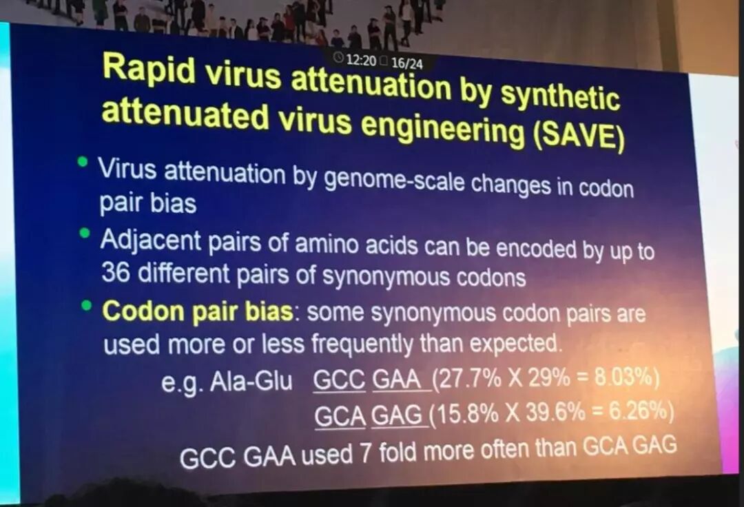 2、Save 技术:该技术是快速将病毒致弱的一种方法,基于基因的密码子优化技术和生物信息学技术。即在保证病毒氨基酸不变的情况下,对其基因组进行重新编辑,从而使其致弱,经过密码子编辑的核酸将通过感染性克隆得到拯救。(笔者理解为由于宿主具有基因偏好性,虽然有几种密码子都会翻译成一种氨基酸,但是核苷酸的序列不同,GC含量不同会导致毒株感染后其复制能力有很大的改变,从而使其毒力降低。该技术的主要难点在于对病毒的蛋白深入的理解,并具备生物信息学分析的能力。)