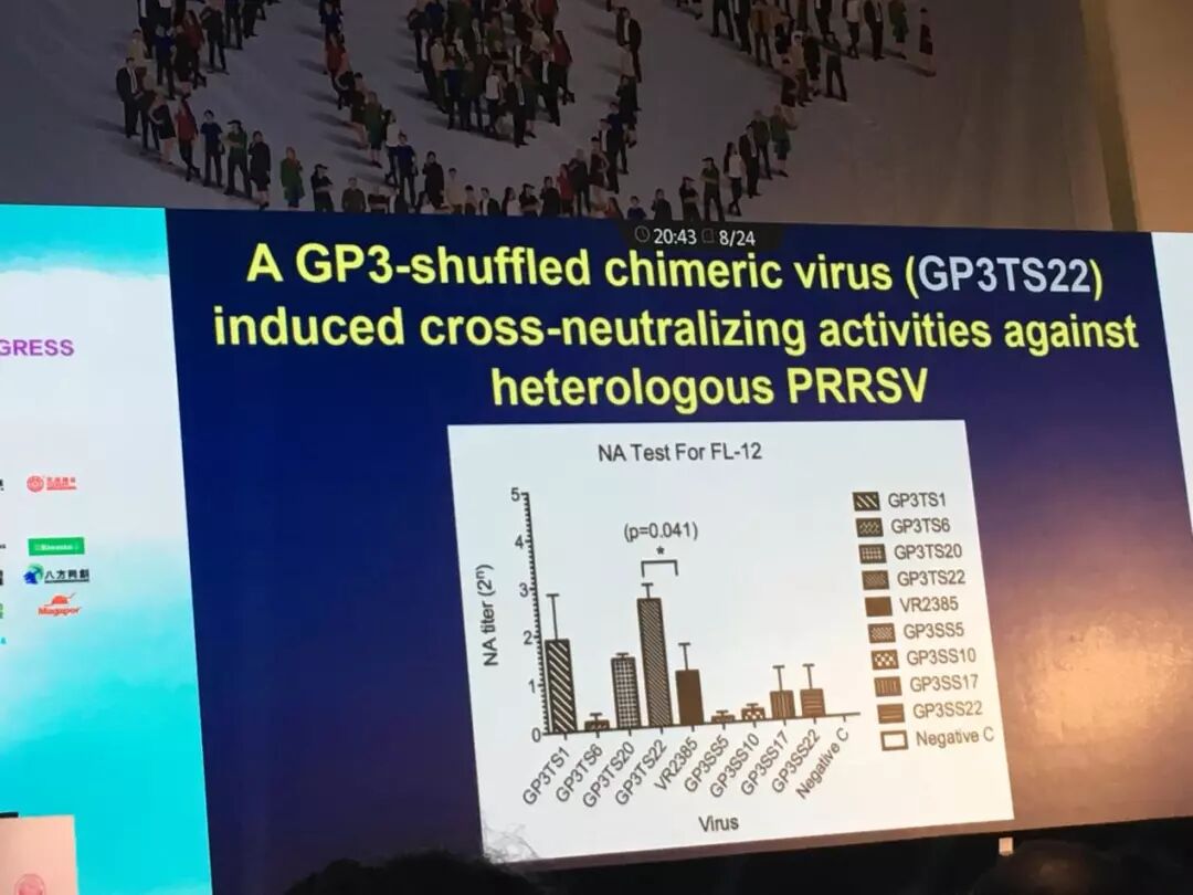Meng 教授也介绍了基因GP3和GP4蛋白DNA shuffling的两个成功案例,构建的新毒株均可产生广谱的中和抗体。