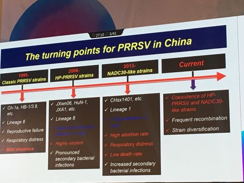 韩军博士首先回溯了蓝耳病在我国的流行历史及HP-PRRSV的遗传演化历程。