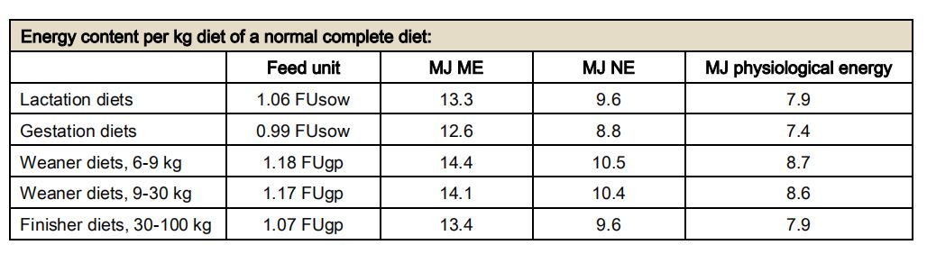 机构:SEGES猪研究中心 作者:PER TYBIRK, NIELS MORTEN SLOTH, NIELS KJELDSEN AND LISBETH SHOOTER 更新日期:2017年10月26日 丹麦饲料评估系统 丹麦饲料评估系统,于2002年修订,是基于营养的生理能值和营养的标准消化率。2002年,旧的饲料单位被两个新饲料单位取代: FUgp(该单位针对断奶仔猪、保育猪和肥猪)和 FUsow(该单位针对母猪)。 在实践中,丹麦能量评估基于以下几点: 1.水分、灰分、粗蛋白和粗脂肪的化学分析 2.回肠水平和粪便水平的体外消化率 3.基于“潜在生理值”的营养能量值 基于每种氨基酸在回肠标准消化率的蛋白质评估系统