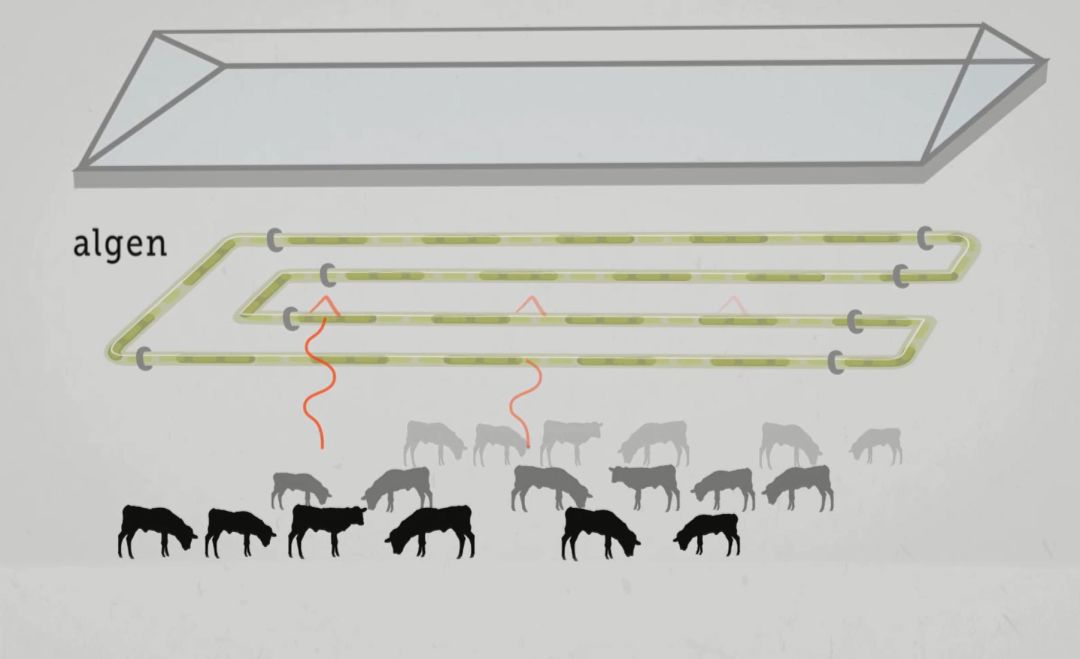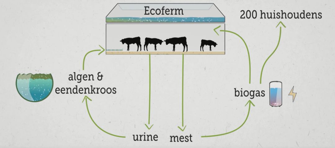 大量的畜禽粪污不仅造成了环境污染,还因为粪污清运消耗了大量的人力成本、造成了大量的能源浪费,让诸多牧场主苦不堪言。 而在荷兰,针对规模化养殖的粪污问题,已有农业科研机构、大型农场主开始了对新型循环农业的尝试和突破。 循环农业 循环农业是运用物质循环再生原理和物质多层次利用技术,实现较少废弃物的生产和提高资源利用效率的农业生产方式。 循环农业作为一种环境友好型农作方式,具有较好的社会效益、经济效益和生态效益。 克罗斯牧场外观照片 在荷兰中部的小镇Uddel,养了1600头奶牛的克罗斯一家通过与荷兰某科研机构合作,开始了他们对循环农业的探索。 传统的粪污处理方式,是将牧场的粪污通过卡车运送到各个种植农场,但是这种方式多费周折,浪费了大量的人力物力。 传统的畜牧粪污处理方式 克罗斯一家开始了对这种模式的改变,他们试图通过对粪便和尿液的分离处理,将尿液作为浮萍及藻类的养料,生产出供奶牛食用的饲料;将粪便作为发酵原料,生产出供应牧场自身及200个家庭的电力消耗。 克罗斯牧场的粪污分离处理系统 克罗斯牧场的循环系统示意图 粪便的综合利用 1600头牛每年会产生大量的粪便,通过粪便发酵罐搜集新鲜粪便,再由粪便发酵产生沼气,进而生产出大量的能源及热源。 最终克罗斯牧场不仅实现了自身的能源、热源的平衡,还实现了对外的能源供给,包揽了140个家庭的供热、200个家庭的供电,还可以把剩余的残渣做成干制颗粒肥料,卖给种植农场。 克罗斯牧场的粪便发酵罐 克罗斯牧场的沼气存储池 克罗斯牧场的发电设备 克罗斯牧场的热水存储设备 尿液的创新利用 克罗斯牧场对尿液进行单独搜集,并将其输送到牧场的二层,与水混合形成浮萍赖以生存的营养基质。在阳光、牛群散热,以及牛群产生的二氧化碳的作用下,浮萍蓬勃生长,每年可达到10万公斤的产量。 克罗斯牧场的尿液利用示意图 牧场主介绍二层温室的浮萍生产情况 同时,收获浮萍后池水里还剩余了许多有价值的矿物质,这些残余基质会被继续输送到牧场全长5000米的贴壁玻璃管道中,作为其中海藻生长所需的营养物质,而海藻每年也可达到1万5千公斤的产量。 克罗斯牧场的海藻生产示意图 供海藻生长的5000米玻璃管道 除此之外,克罗斯一家还在牧场周边,铺设了七处浮萍生产设施。通过这些生态循环,整个牧场能节约9000公斤豆粕饲料使用量,而且还进一步省去了清理粪污所需要消耗的人力成本、减少了能源浪费。 克罗斯一家在外设的生产设施中播撒浮萍 奶牛在饮用农场自产的饲料 项目研发主管Jan de Wilt说道,“这种发展对猪养殖业也同样重要,想象一下我们在屋顶拥有一个温室,这是一个经济有效的温室,它利用农场里的热量和二氧化碳,并且还利用了粪便中的矿物质,它变成了集约化畜禽养殖和植物生产之间的一种共生关系,形成了农场闭合循环体系。” 项目研发主管Jan de Wilt “这是一个开始,也是至关重要的第一步。”Jan de Wilt笑着补充道。 资料来源: Innovatie Netwerk