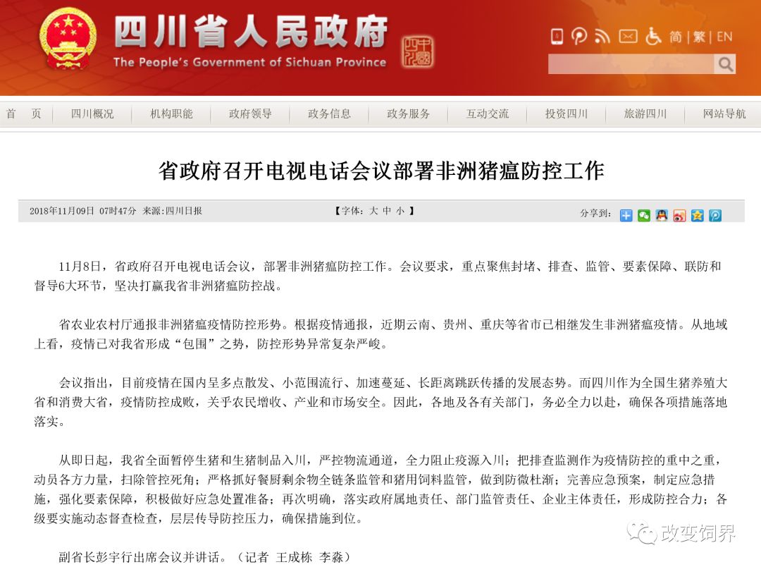 会议指出,目前疫情在国内呈多点散发、小范围流行、加速蔓延、长距离跳跃传播的发展态势。而四川作为全国生猪养殖大省和消费大省,疫情防控成败,关乎农民增收、产业和市场安全。因此,各地及各有关部门,务必全力以赴,确保各项措施落地落实。