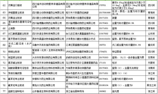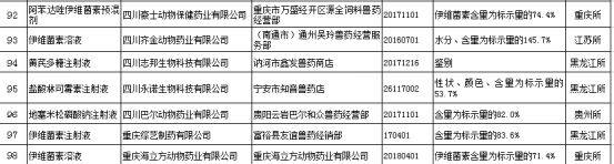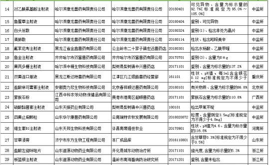 (18)西安市昌盛动物保健品有限公司(当期兽药质量通报产品含量低于50%(含50%)或高于150%(含150%)的)。