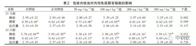 植物提取物具有广泛的生理功能,如杀菌、抗病毒、抗氧化和抗炎等,它被应用于家禽饲料中,是一种潜在的抗生素替代品。 肉桂油是肉桂的提取物,其主要成分为肉桂醛。在肉鸡的日粮中添加肉桂醛能够提高生长性能和养分的消化率,增加盲肠双歧杆菌和乳酸杆菌的数量,降低大肠杆菌的数量,改善肠道绒毛的形态结构和肉鸡的免疫机能。 包被是一种能保护饲料添加剂有效组分活性和保证产品品质一致高效的技术,在提高产品稳定性、掩盖不良气味、控制产品在消化道中的释放和提高生物利用度等方面发挥着重要作用。 1、试验目的 为保证肉桂油在小肠内有效定点释放,本次试验选用了包被肉桂油,探讨肉鸡日粮添加包被肉桂油对免疫器官指数及肠道形态结构的影响,为肉桂油在肉鸡生产中的应用提供参考。 2、试验材料与基础日粮 包被肉桂油,产品外观为浅黄色粉末状,肉桂醛质量分数为35.7%,添加剂的剂量选择依据本实验室前期肉桂油在仔猪日粮中的应用而定;抗生素用黄霉素,抗生素的剂量依照本试验肉桂醛最小添加剂量而定。基础日粮采用玉米-豆粕型日粮,基础日粮组成和营养水平见表1。 注:矿物质预混料为每千克全价料提供:铜 8 mg;锌75 mg;铁80 mg;锰100 mg;硒0.15 mg;碘0.35 mg。维生素预混料为每千克全价料提供:维生素A 12 500 IU;维生素D3 2 500 IU;维生素K3 2.65 mg;维生素B1 2 mg;维生素B2 6 mg;维生素B12 0.025 mg;维生素E 30 IU;生物素 0.032 5 mg;叶酸 1.25 mg;泛酸 12 mg;尼克酸50 mg。 3、试验动物及设计 试验选取1日龄科宝肉鸡540只,按照体重相近的原则随机分为6个处理组(对照组、正对照组、50 mg/kg肉桂油组、100 mg/kg肉桂油组、200 mg/kg肉桂油组、300 mg/kg肉桂油组),每组6个重复,每个重复15只鸡。对照组肉鸡饲喂基础日粮,正对照组饲喂添加50 mg/kg黄霉素的基础日粮,其它处理组分别饲喂添加50、100、200和300 mg/kg肉桂油的基础日粮。试验周期42 d。 4、样品采集与处理 在试验21 d和42 d,从每个重复随机抽取1只体重相近肉鸡,空腹进行翅下静脉采血,用EDTA作为抗凝剂,3 000 r/min离心10 min获得血浆,迅速分装后并转移至-20℃保存待测。然后用颈部脱臼法致死进行屠宰,迅速取出胸腺、脾脏、法氏囊称重并记录。迅速取出并分离十二指肠、空肠、回肠,分别取每个肠段中间部分约3 cm长样品,用预冷的生理盐水冲去肠道内容物并置于已预冷的4%多聚甲醛固定液中固定,用于制作切片观察肠道形态结构。 5、测定指标与方法 5.1免疫器官指数的测定 解剖后迅速分离并称取胸腺、脾脏、法氏囊的质量,分别计算其与质量的相对比值。 免疫器官指数=免疫器官质量/鸡只质量 5.2肠道形态结构的测定 将肠段分别从4%的多聚甲醛溶液中取出,用清水轻轻泡洗后修整好肠段,再用不同浓度的酒精进行梯度脱水后,再用二甲苯将样本透明处理,处理完成后用石蜡将样品进行包埋。包埋后将组织蜡块用薄片切片机切割成厚度5 μm的切片,经烤片、烘片处理后,采用HE染色法,用苏木精-伊红染液进行染色,然后用中性树脂封片,做成永久切片。制成的切片用光学显微镜(装有计算机辅助形态测定系统)观察切片,从每个小肠组织的不同部位分别选取10根完好的肠道绒毛,测量每根绒毛的绒毛高度和隐窝深度。绒毛高度:绒毛顶端到肠腺开口处垂直距离。隐窝深度:隐窝开口处到隐窝基底部的垂直距离。 6、统计分析 试验数据采用SPSS 17.0软件进行单因素方差分析(One-way ANOVA),当组间差异显著时用Duncan氏法进行多重比较检验,以“P<0.05”为差异显著,“P<0.01”为差异极显著水平,结果以“平均值±标准差”表示。 结果 6.1 包被肉桂油对肉鸡免疫器官指数的影响 由表2可见,在整个试验阶段,与对照组相比,黄霉素处理对胸腺、脾脏、法氏囊指数均无影响(P>0.05)。在21日龄 ,与对照组和正对照组相比,日粮中添加50 mg/kg肉桂油分别提高了肉鸡脾脏指数23.7%、17.7%(P<0.05)。 在42日龄,与50 mg/kg肉桂油组相比,日粮中添加100 、200mg/kg肉桂油分别提高了肉鸡胸腺指数17.8%、19.8%(P<0.05),日粮中添加100 mg/kg肉桂油提高了肉鸡脾脏指数47.6%(P<0.05),黄霉素处理及肉桂油处理对法氏囊指数均无影响(P>0.05)。 6.2 包被肉桂油对肉鸡肠道形态结构的影响 由表3可知,在21日龄,与对照组相比,日粮中添加300 mg/kg肉桂油增加了十二指肠的绒毛高度37.5%(P<0.05)、隐窝深度37.9%(P<0.05),提高了空肠绒毛高度/隐窝深度6.2%(P<0.05)。 在42日龄,与50 mg/kg肉桂油处理组相比,日粮中添加100 、200、300mg/kg肉桂油分别提高了空肠的绒毛高度14.5%、13.1%、27.9%(P<0.05)。与对照组相比,日粮中添加100 、200、300 mg/kg肉桂油分别提高了空肠绒毛高度/隐窝深度37.0%、31.2%、30.4%(P<0.05)。 7、结论 在日粮中添加肉桂油能够促进脾脏发育、保持肠道形态结构完整性。包被肉桂油可以替代黄霉素在肉鸡饲料中的应用,在本试验条件下,肉桂油的添加剂量以300 mg /kg 为宜。 内容来源:段瑞,郭双双,丁斌鹰.包被肉桂油对肉鸡生长性能、血浆生化指标、免疫器官指数和肠道形态结构的影响[J].粮食与饲料工业, 2017(5): 49-54.
