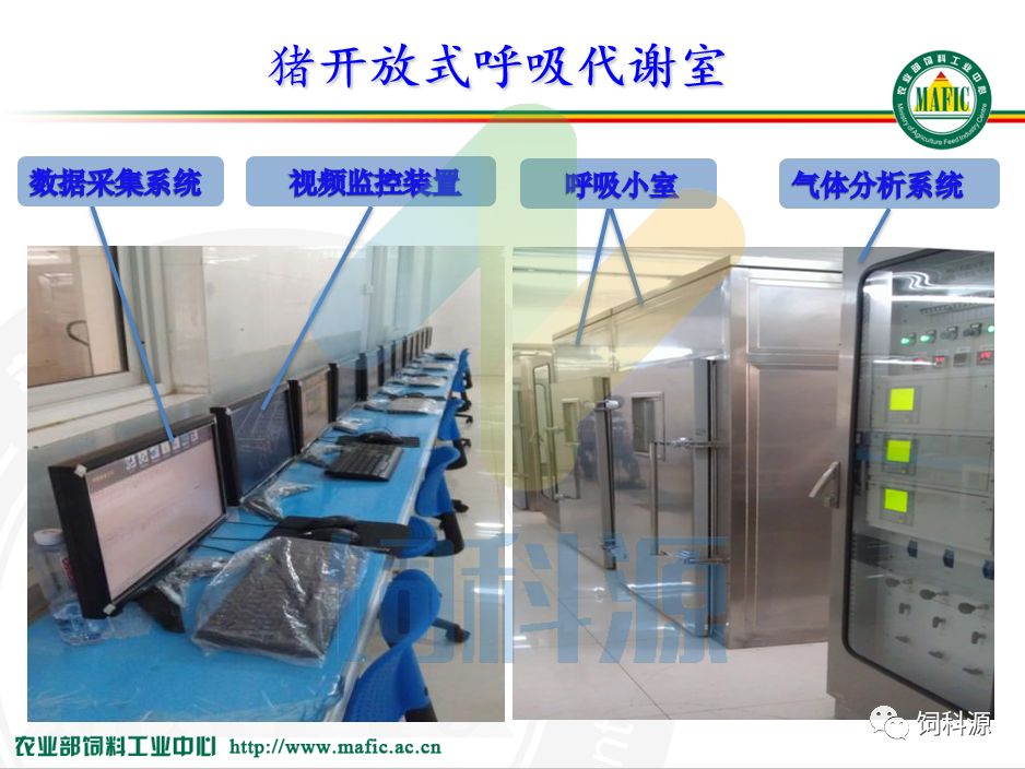 这是我们呼吸测热的设备,我们有九台,在中国测净能的九台设备,只有我们有。每一台100万,在十几年前农业部给的钱,现在在建的话100万下不来了,因为物价的猛涨。什么概念呢,这个小室里面,外行人管它叫100万猪的小别墅,因为里面所有的气体和温度都能够控制,能够监测。这是很难得的。现在再建就很难了。因为维持费用太高。猪一进去24小时耗电,我们的电费在丰宁基地一个月要3万多块钱,这九台设备的耗电太厉害了。