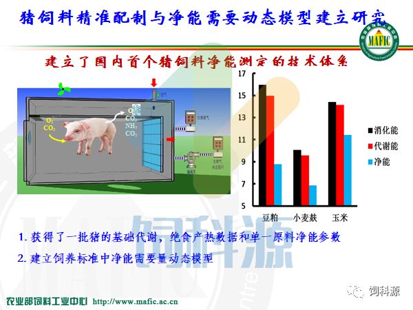 我为什么讲净能体系,大家都知道中美贸易大战,大豆的短缺和大豆的需求问题是非常严峻的。我们去年进口了9400多万吨大豆,自产的只有1000多万吨,我们自产的大豆只够我们吃豆腐,吃腐乳,吃酱油用的原料。真正猪吃的,可能还得靠国外。这次贸易大战也提出来了我们要低蛋白日粮,今天谯仕彦教授也会做演讲,就低蛋白日粮的理论,是谯仕彦研究了十多年的理论。他的理论基础一是我要配备配置必需的氨基酸,氨基酸组成合理以后,可以降低蛋白的使用量。那么更重要的是要使用净能体系。净能体系可能在猪的领域里面,只有我们中心做了猪的净能体系研究,已经十几年,而且净能的设备也是这些年来我们独有的。因为它太耗时间,太耗精力,太耗经费了。在这样的情况下,我今天讲讲猪的净能体系的研究进展。