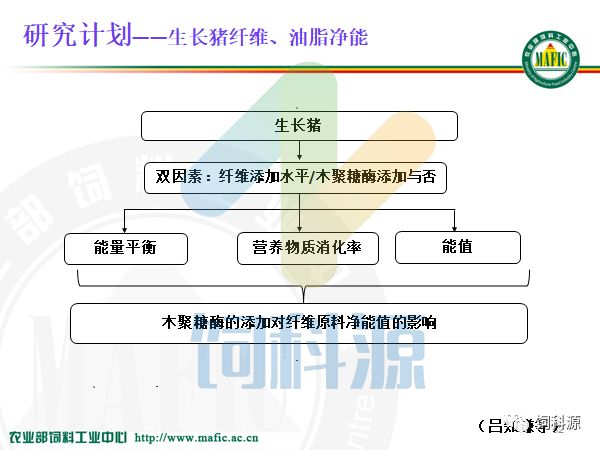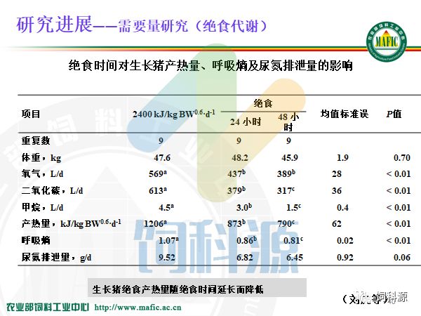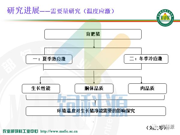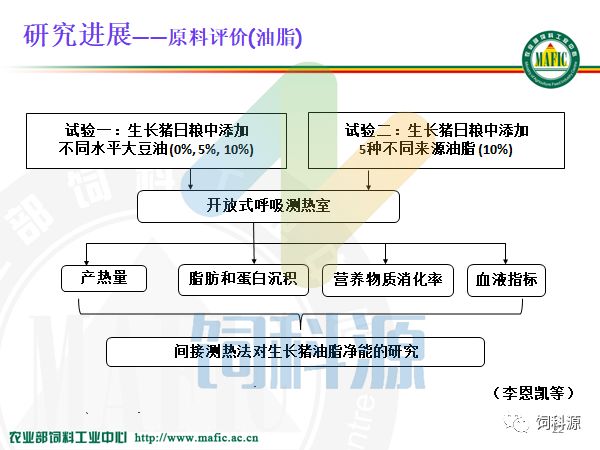 这个片子是我们上个星期请的华南理工大学杨博讲的理论,他是做脂肪的,做的很好,我觉得他的思路很好,热增耗如果减少一个百分点,是不是这块儿生产的净能就增加一个百分点?那么脂肪代谢,脂肪先降解,再合成,合成以后再到体内,或者游离脂肪酸进入线粒体,那么说热增耗如果减少了五个百分点,那么生产用的净能就多了,所以我们讲净能。最终用净能来配制日粮,特别是我们现在配制低蛋白日粮,一起用净能体系,那么如果热增耗减少,就可以增加生产的净能,我觉得这个理论和想法真的挺好,问题是我们如何减少热增耗的数量?今天我就针对净能的工作,给大家做一个进展的汇报。