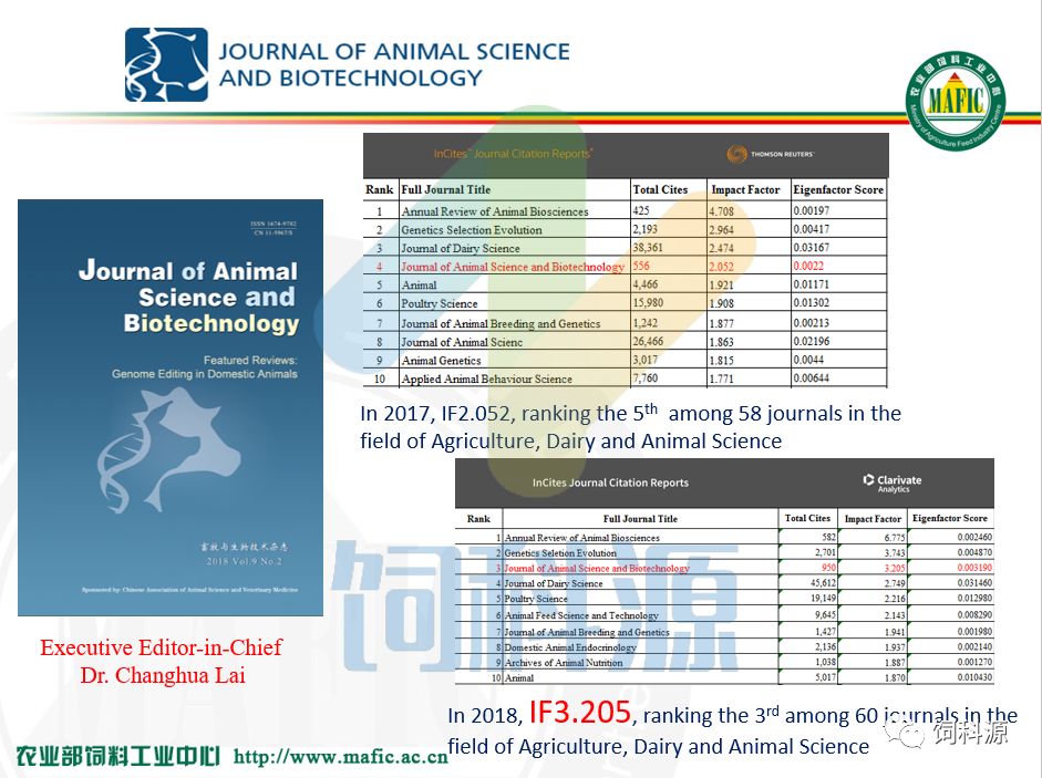 我还想再说一下,Journal of Animal Science And Biotechnology这个杂志。在座的我们都是20多年的朋友,因为我没离开过饲料行业。创办一个杂志,09年批准,10年创刊,经过8年影响因子到3.2,我也感到挺自豪的。我和赖长华也商量,可能我们不想使它的影响因子再去增加,增加可能就偏向分子,偏向于基础理论,我们还不想离开畜牧行业,因为这个杂志立足于中国畜牧行业跟世界去对接,可能就维持到3左右就可以,否则可能我们畜牧领域的文章接收不了。