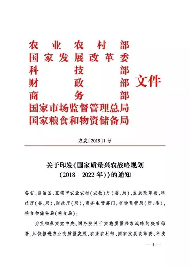 《规划》指出,到2022年,质量兴农制度框架基本建立,初步实现产品质量高、产业效益高、生产效率高、经营者素质高、国际竟争力强,农业高质量发展取得显著成效。