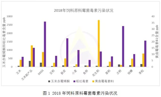 玉米作为饲料的重要组成原料,其品质直接关系到饲料安全。2018年玉米霉菌毒素污染情况在1-4月霉菌毒素含量普遍偏低,5-9月呕吐毒素含量较高,存在大比例的超标现象,10-12月玉米种黄曲霉毒素B1含量显著升高,超标现象严重。