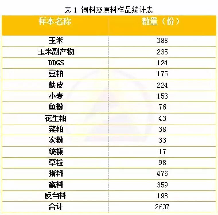 江苏奥迈饲料霉菌毒素工程技术研究中心对来自全国各地的1604份饲料原料样品进行检测分析,发现植物性饲料原料呕吐毒素含量普遍偏高,尤以DDGS、次粉和草粒超标严重,而花生粕、玉米副产品和DDGS中黄曲霉毒素B1含量较高,平均值严重超过饲料卫生标准,需谨慎使用,注意使用比例。