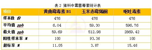 猪料中呕吐毒素污染与往年一致,污染较为严重,加之呕吐毒素与其他霉菌毒素的联合作用效果及对肠道黏膜和细胞的破坏作用,猪料产品应更加关注呕吐毒素污染问题。