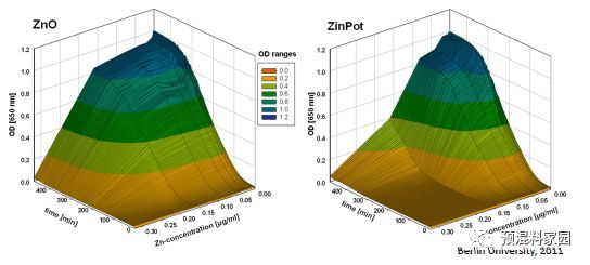 图5.在低于最小抑菌浓度情况下Zinpot与普通氧化锌对大肠杆菌的抑制作用
