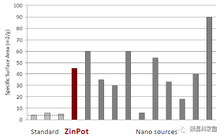 图4.不同来源氧化锌的表面积