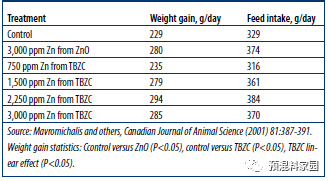 图1.氧化锌是改善仔猪性能唯一的锌源