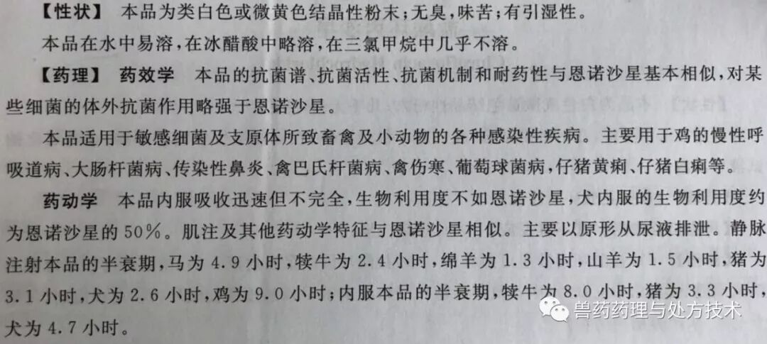 目前,在兽医治疗临床中,常见的《兽药使用指南》和《兽药药理》中,对该药描述的大过于简单,是不足以有效、更好指导临床用药的。