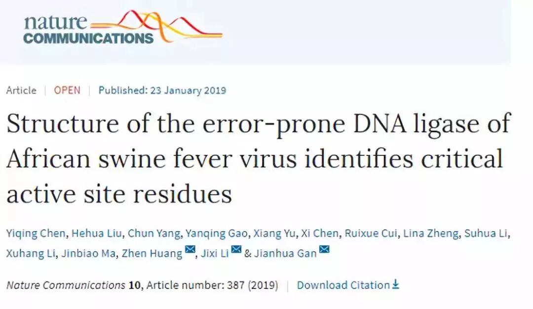 1月23日,复旦大学甘建华,李继喜及四川大学/佐治亚州立大学Huang Zhen共同通讯等在Nature Communications 上发表题为“Structure of the error-prone DNA ligase of African swine fever virus identifies critical activesite residues”的文章,报道了四个独特的活性位点残基(AD结构域的Asn 153和Leu 211;OB结构域的Leu 402和Gln 403)对AsfvLIG的催化效率至关重要。