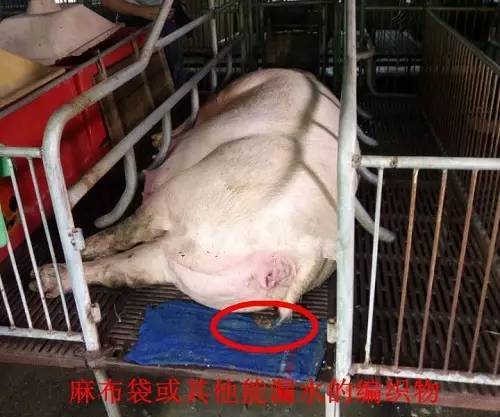 首先母猪破羊水后,在母猪后驱垫麻布袋或其他能漏水的编织物,避免胎衣漏到产床下,有利于收集胎衣!