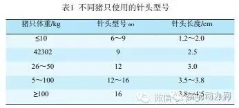 选择合适的针头,选择合适针头,严禁使用粗短针头(表1)。