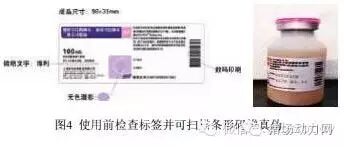 检查疫苗瓶的标签登记、名称、生产商、生产日期、保质期及批号,扫描条形码辨别疫苗真伪(图4),说明书破损无法辨认生产日期和保质期的疫苗不能使用。
