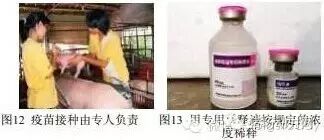 疫苗接种由专人负责(图12),不得交给生手;由主管兽医跟踪免疫实施,严禁漏免。