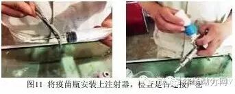 将疫苗瓶安装上连续注射器,并检查是否连接严密,是否漏气(图11)。