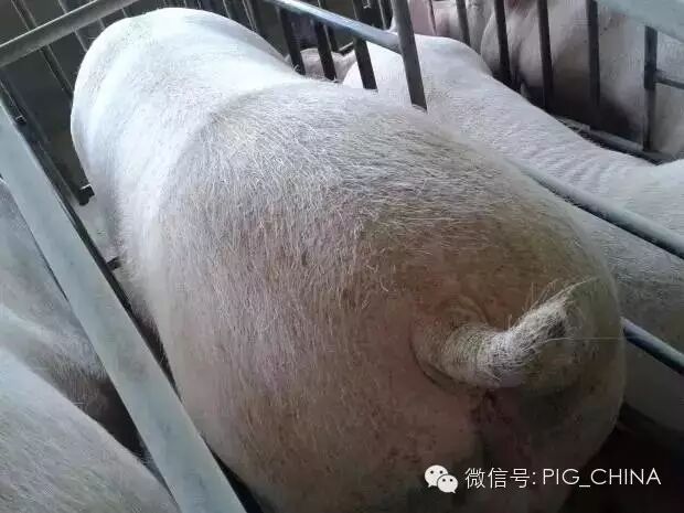 (2)观察健康状况:各阶段母猪泪斑、皮肤整洁度。如果母猪泪斑明显,母猪皮肤粗糙且发黄发白,甚至可观察到母猪背部有出血点,证明此种猪场母猪群健康度很差,建议不必购买!