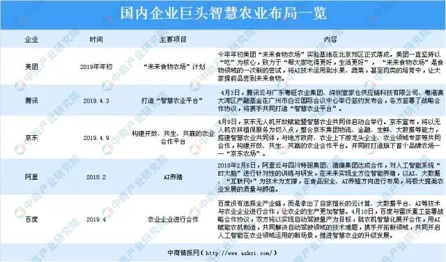 三、企业布局——互联网巨头纷纷布局智慧农业