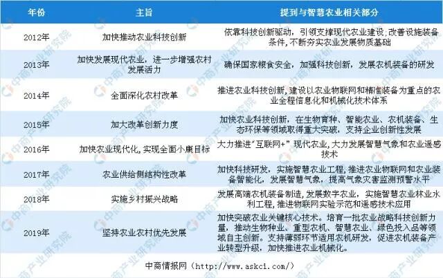 2012-2019年中央一号文件提到与智慧农业相关内容
