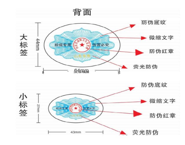 生猪屠宰检疫验讫印章样式 牛羊肉塑料卡环式检疫验讫标志样式 新型动物产品检疫粘贴标志背面样式