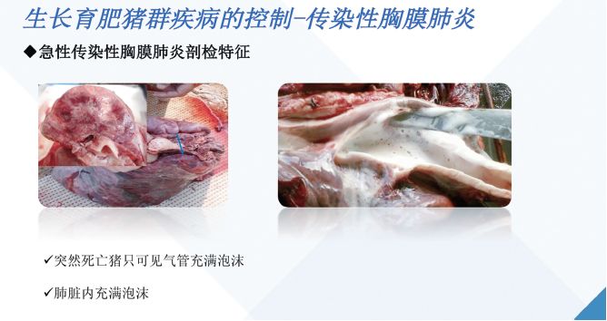 除了回肠炎,猪肺炎支原体也是悄悄偷走猪场利润的疾病,该病可垂直传播与水平传播,虽然不会直接导致猪只死亡,但相当于打开了猪呼吸道疾病的大门,加重其他疾病对猪群的影响。所以,有效控制支原体肺炎是管理猪群其他疾病的前提与关键因素。肖海君告诉记者,猪只急性感染或者初次感染支原体肺炎,发病猪只表现为体温升高,咳嗽和呼吸窘迫;慢性感染常见13-20周龄生长育肥猪只;初期干性咳嗽,中期连续剧烈咳嗽和后期腹式呼吸;生长速度下降,均匀度下降。此外,若猪只感染传染性胸膜肺炎,表现出发病猪只间歇性湿咳与进行消瘦。