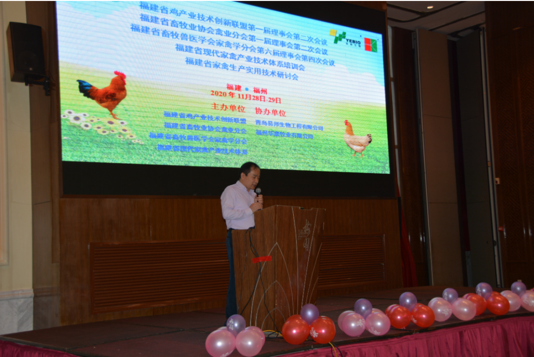 2020年11月28日-29日,福建省畜牧业协会禽业分会第一届理事会第二次会议、福建省畜牧兽医学会家禽学分会第六届理事会第四次会议在福州梅园国际大酒店圆满召开,同时举办福建省家禽生产实用技术研讨会。本次会议由福建省畜牧业协会禽业分会、福建省畜牧兽医学会家禽学分会、福建省鸡产业技术创新联盟和福建省现代家禽产业技术体系联合主办,青岛易邦生物工程有限公司和福州华康牧业有限公司协办。理事会议由福建省畜牧业协会禽业分会秘书长、福建省畜牧兽医学会家禽学分会秘书长、福建省农业科学院畜牧兽医研究所李忠荣研究员主持,技术研讨会由福建省畜牧兽医学会家禽学分会副秘书长、福建农林大学动物科学学院(蜂学学院)高玉云副教授主持,福建省畜牧兽医学会秘书长林伯全教授莅临会议指导,来自全省从事家禽生产、科研、教学、管理等共约100位理事参加了此次会议。