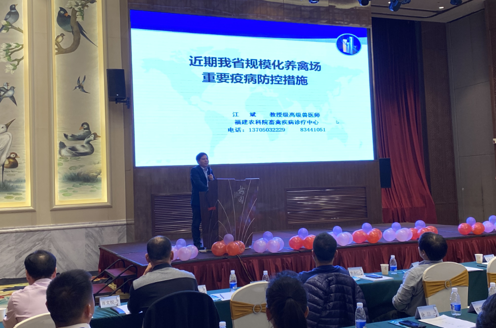 福建省农业科学院畜牧兽医研究所江斌研究员做了“近期我省规模化养殖场重要疫病防控措施”报告,重点报告了鸡滑液囊支原体病、鸡传染性喉气管炎、鸡传染性鼻炎、鸡安卡拉病毒病、番鸭腺病毒病(白肝病)、鸭短喙矮小综合症、鸭新型呼肠孤病毒病及鸭坦布苏病毒病等疾病的流行特点、临床症状、病理变化及防治(防控)措施。