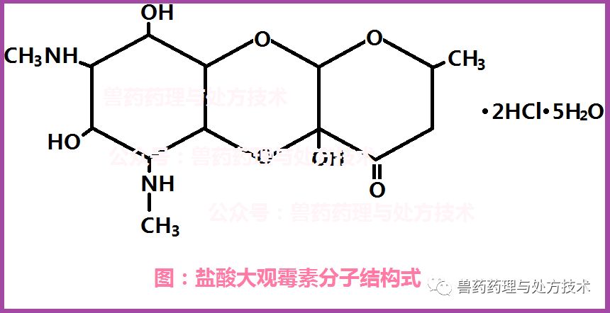 大观霉素属于碱性抗菌素,碱性越强其抗菌效力越强;但大观霉素不溶解于水,所以,目前国内最常用的商品化原药是盐酸大观霉素。它质量保证标准下,眼观是白色或类白色结晶性粉末;它易溶于水,溶于水的水溶液显酸性检测结果,其1%水溶液的pH为3.8--5.6。