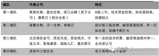 我国植物提取物企业可分为四个层次