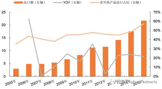 我国植物提取物出口额快速增长(亿美元)
