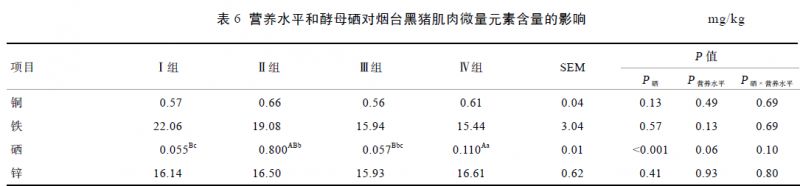 2.5 营养水平和酵母硒对烟台黑猪肌肉微量元素含量的影响