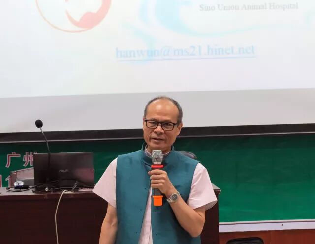 报告现场 为学习宣传贯彻党的十九大精神,践行农业农村部“同一世界,同一健康”的理念,按广州市科协科普要求,5月16-17日,广东省畜牧兽医学会中兽医学专业委员会、小动物医学专业委员会在华南农业大学联合举办了一次以“传递爱心、守护健康、广东兽医在行动、科普名师培育”为主题的“兽医服务进校园”公益活动。 本次活动邀请世界中兽医协会副会长、美国佛罗里达大学谢慧胜教授,以及亚洲传统兽医学会前会长郑汉文医师等2位国际宠物中兽医资深临床专家,以及北京、广州、深圳等5位宠物中兽医临床医师,共同为全体参会代表开展宠物中兽医临床经验交流与病例分享。 今天小编为大家分享亚洲传统兽医学会前会长郑汉文医师的《宠物跌打损伤的中兽医与康复整合治疗》专题。郑医师首先介绍了气、血等传统中兽医知识,然后结合本人实践经验,通过大量临床病例重点分析了宠物创伤性损伤的诊疗方法及应对策略。 名 师 简 介 郑汉文医师 台湾永和动物医院、台湾中盟动物医院院长 郑汉文,兽医师、硕士,台湾永和动物医院、台湾中盟动物医院院长,美国田纳西大学犬得复健师课程结业、美国气中兽医研究所兽医针灸师、中药师、推拿师与食疗师认证课程结业。 曾任台湾嘉义大学、屏东科技大学、台湾大学兽医系中兽医课程的兼职教师,第六、七届中华传统兽医学会理事长,第六届亚洲传统兽医学会会长,世界中兽医学会理事与教育认证委员,美国气中兽医研究所台湾地区代理人。