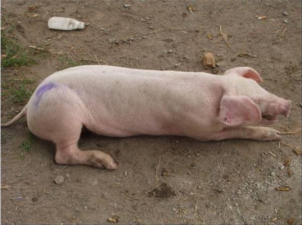 ③发病猪初期发烧﹥40℃,发抖、扎堆。