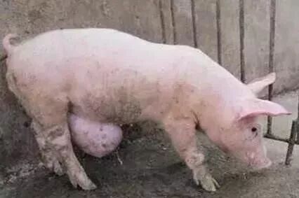 脐疝是肠管或网膜经脐孔进入皮下而致,多见于仔猪。一般是先天性的,有一定的遗传性。另外,因仔猪便秘或激烈跳跃使腹压剧增,可能引起后天性脐疝,或使原有不明显的脐疝加剧而明显化。