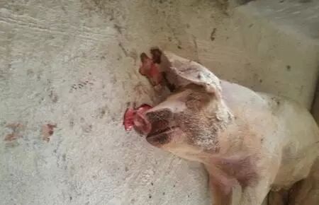 猪死后流鼻血,有经验的兽医都知道是猪传染性胸膜肺炎,该病又称猪接触传染性胸膜肺炎,是猪的一种呼吸道传染病,以呈现胸膜肺炎症状与病变为特征。急性型死亡率较高,慢性病例死亡率相对低一点,是目前规模化猪场的主要猪病之一,不同年龄的猪均易感,但以4~5月龄的猪死亡较多。