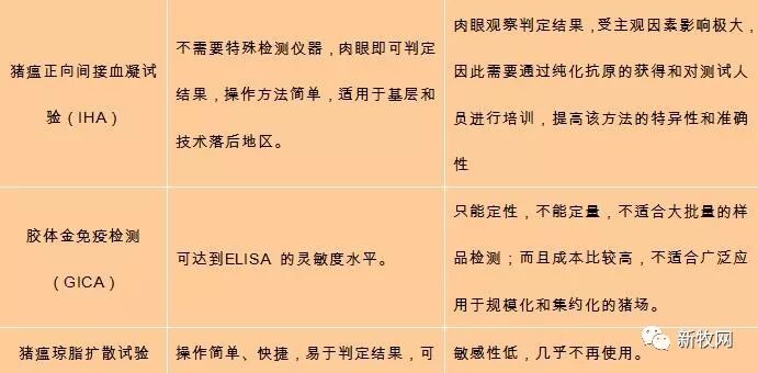 当前猪瘟检测方法具有不同特点