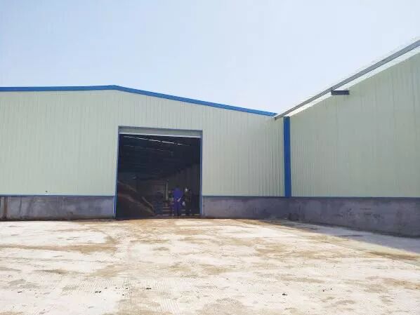 东瑞是采用高床发酵养殖模式较早较成功的养殖企业,猪舍一楼垫料发酵床采用我们研发的专用高床翻堆机进行每天的垫料翻堆工作,发酵垫料一般持续使用8个月。为解决使用后的垫料资源化利用,我们为龙川东瑞农牧发展有限公司设计建设年产1万吨优质有机肥厂(见图5),包括发酵车间、陈化车间和加工车间,发酵车间配套链板翻堆机,采用槽式好氧发酵工艺。