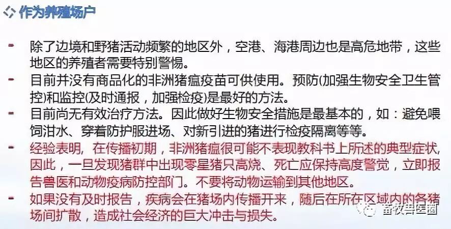 各地要进一步加大对辖区内生猪屠宰企业监管力度,强化日常监管,督促生猪屠宰企业切实落实入场查验、待宰静养等质量安全控制措施,积极配合兽医部门做好非洲猪瘟防控工作,一旦发现生猪出现疑似非洲猪瘟临床症状,要及时报告兽医部门。要加强屠宰环节病害猪无害化处理监管,对屠宰环节发现的疑似非洲猪瘟生猪及其产品,要督促屠宰企业按兽医部门要求进行无害化处理,严防流出屠宰场。