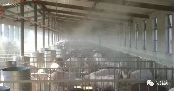 喷雾、喷淋会增加舍内和床面湿度,不宜封闭式猪舍内采用,但可用于屋顶冷却降温。