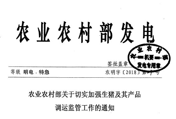 8月31日,农业农村部印发了《关于切实加强生猪及其产品调运监管工作的通知》。文件指出生猪及其产品调运应当严格执行《中华人民共和国动物防疫》《非洲猪瘟疫情应急预案》的农业农村部公告第2号有关规定,不得从高风险去向低风险区调运。以及对发生疫情的省(自治区、直辖市)受威胁区以外地区生猪及其产品的调运等做了详细要求!