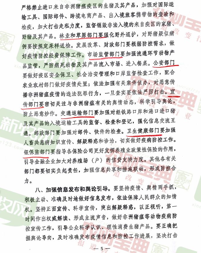 在信息发布和舆论引导方面。通知指出相关部门要坚持疫情、舆论两手抓,积极主动、准确及时地做好信息发布,依法保障人民群众的知情权。做好非洲猪瘟等动物疫病防控宣传工作,引导公众科学认识、理性消费生猪产品。要准确把握舆论导向,及时准确发布疫情信息和防控进展,坚决打击造谣、传谣行为。(全文见文末附录1)