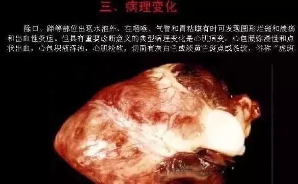 口蹄疫临床症状表现为:发热,体温升高到40到41度,行走或起卧时因蹄部炎症发生产尖叫,初期蹄壳与皮肤交接处出现水疱,接着水疤破裂而形成溃疡面,严重蹄壳脱落,卧地不起,哺乳母猪乳头常见水疱,吃奶仔猪通常因心肌炎和急性胃肠炎而突然死亡,往往上一秒还在吃奶,下一秒就有可能死亡。