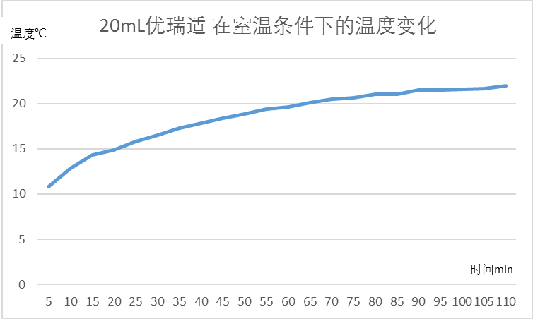 20ml规格优瑞适回温需要2分钟接近室温(21-25℃)。